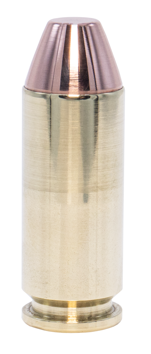 Fort Scott Munitions® offers a range of high-performance handgun ammo, featuring FSM® monolithic, solid copper spun SCS® projectiles designed for exceptional effectiveness. Our patented Tumble Upon Impact® TUI® technology ensures that these projectiles tumble upon striking water-based tissue, delivering maximum internal damage while minimizing external trauma. This innovative design leads to a clean, ethical kill by focusing the impact force internally.