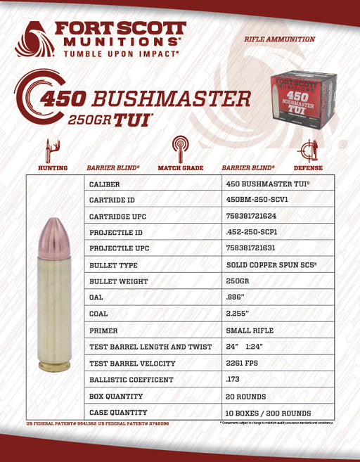 450 Bushmaster SCS® TUI® - 250Gr Solid Copper Ammo